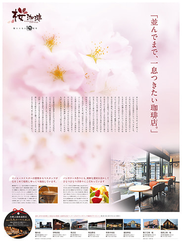 大阪で今、話題のコーヒーショップ、桜珈琲のブランディングを全面に表現した新聞広告。知らなかった人でも、『行ってみようかなぁ…』と思わせるコピーワークと上品なビジュアルでブランドを表現しました。