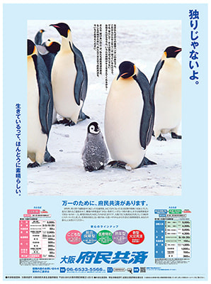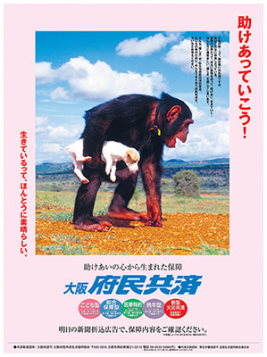 共済保険のメリットと相互扶助の概念を親しみやすい動物のビジュアルで表現。インパクトのある写真が話題となりました。