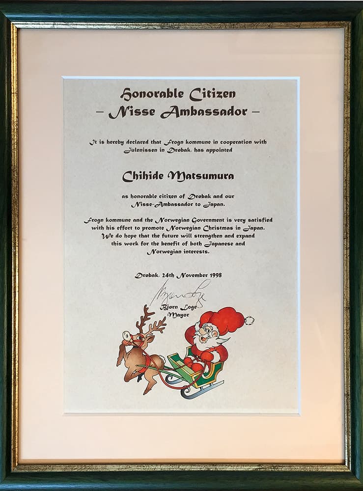 ノルウェーFROGN市 名誉市民賞(サンタクロース大使)受賞