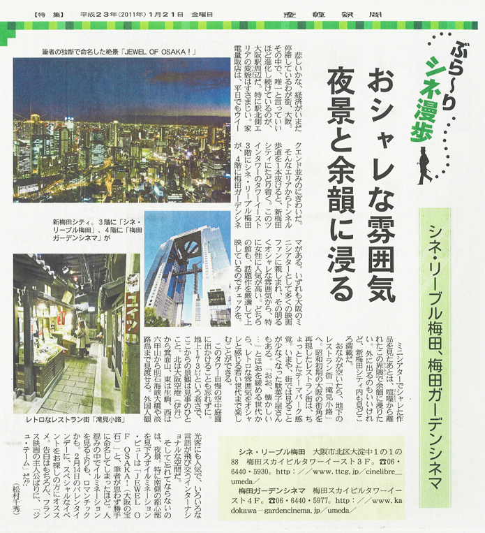 ■「ぶら〜りシネ漫歩」(産経新聞マンスリー・シネガイド内<毎月第3金曜日夕刊> 2010年8月〜2011年2月掲載)