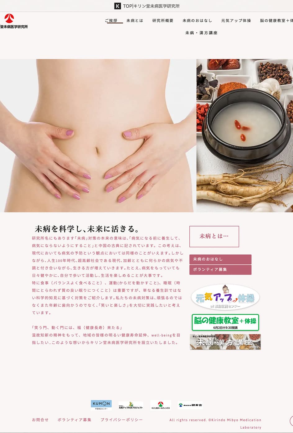 株式会社キリン堂 寺西忠幸会長がライフワークで取組む「治未病」を紹介するサイト。シンプルで、幅広い世代が親しめるサイトにしました。